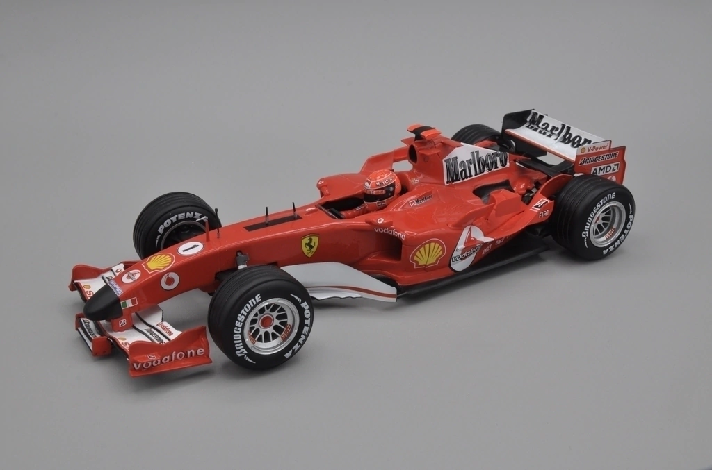 I was not a good day for “Schumy”, but the reasons this is the F2005 in my collection is the special black nose that day.The Scuderia presented that scheme in honor to Pope John Paul II who had died the day before.